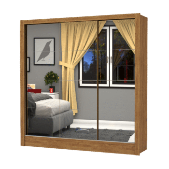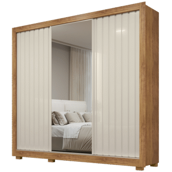 Guarda-Roupa Dubai/Santiago Premium(3 Portas espelhadas) 1,79 m Cinamono/Branco – CARIOCA MÓVEIS
