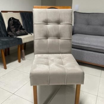 Mesa de Jantar Dubai Tampo Londres Cinamomo 160×80 6 Cadeiras Genova Veludo Cinza 507 Madeira Maciça