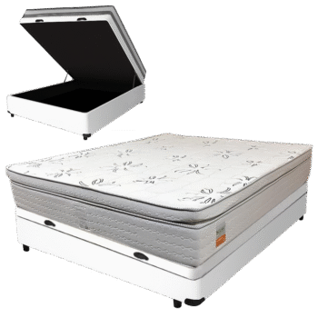 Colchão Casal New York D33 + Base Box Simples Corino Preto – ECOTEC + ALTO NÍVEL CAMAS E COLCHÕES