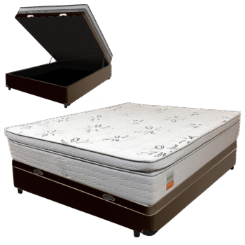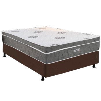 Colchão Casal New York D33 + Base Box Simples Corino Marrom – ECOTEC + ALTO NÍVEL CAMAS E COLCHÕES