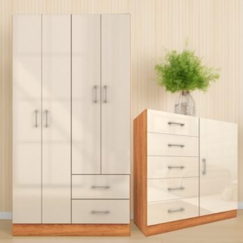 Guarda-Roupa 4 Portas Panamá 4002 + Cômoda 5 Gavetas Aruba Cinamomo/Off White – FELLICCI