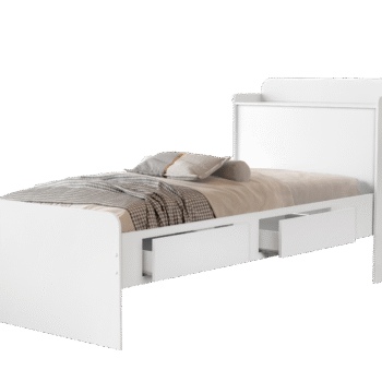 Cama Solteiro Baú Tamires + Auxiliar Mili Branco – MADEC/VJ MÓVEIS