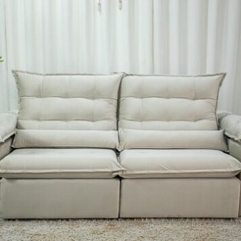 Sofá Retrátil Reclinável Lima 2.00m Linho Bege A57 – Sem Caixa