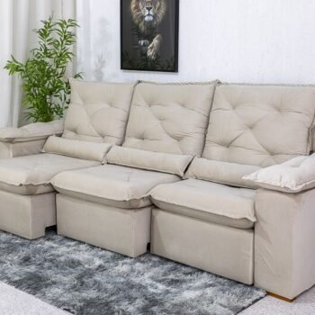 Sofá Retrátil Reclinável Roma 2.70m Veludo Bege 01 – D28 Soft