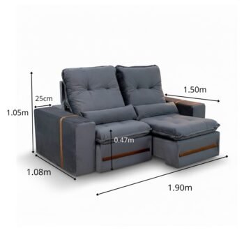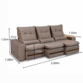 Sofá Retrátil Reclinável Barcelona 2.90m Linho Cinza Claro 461 – D33 e Molas Ensacadas