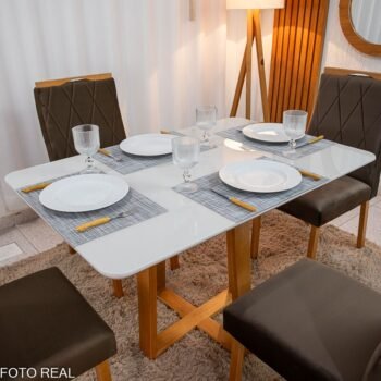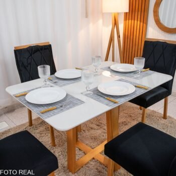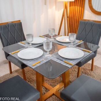 Mesa de Jantar Pedro 120×80 Vidro Grafite/Base Madeira Art Assento – Entregue Montada
