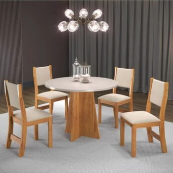 Mesa Atlanta Base Cabo Frio Marrom Tampo Off Pedra 100×60 4 Cadeiras Assento Creme – Teixeira
