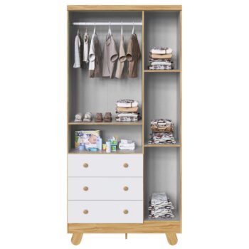 Guarda-Roupa 3 Portas Pingo Amêndoa/Off White – PEROBA MÓVEIS