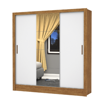 Guarda-Roupa 3 Portas Dubai/Santiago Plus(1 Porta espelhada) 1,79 m Cinamono/Branco – CARIOCA MÓVEIS