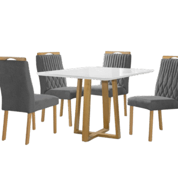 Mesa Pedro 120 Mel/Off White com 4 Cadeiras Gênova Veludo Grafite – ART ASSENTOS