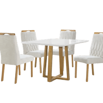 Mesa Pedro 120 Mel/Off White com 4 Cadeiras Gênova Veludo Marfim – ART ASSENTOS